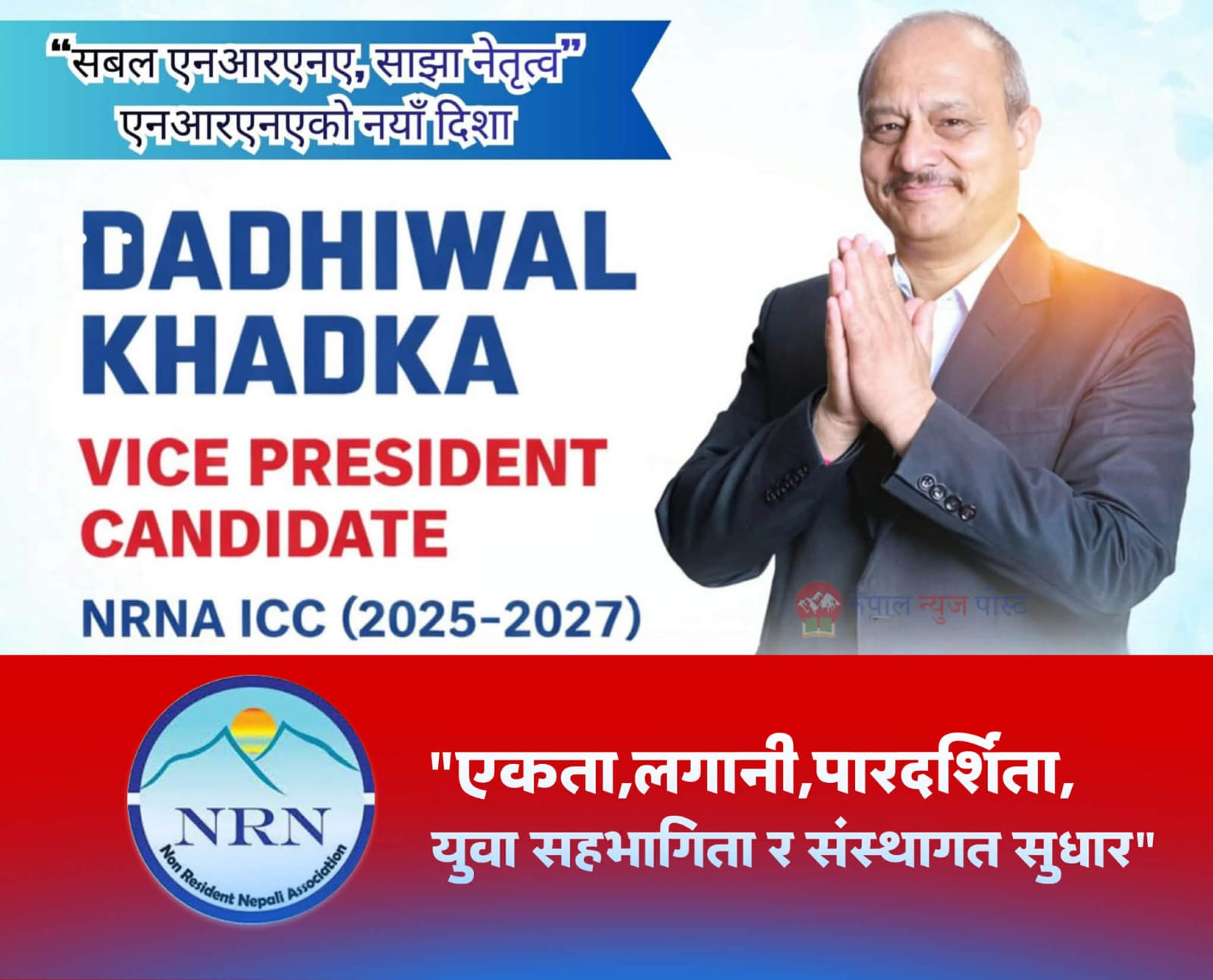 टोकियो । गैरआवासीय नेपाली संघ (एनआरएनए) को आगामी कार्यकालका लागि समाजसेवी तथा व्यवसायी ददिवल खड्का ले उपाध्यक्ष पदमा उम्मेदवारी घोषणा गरेका छन् ।